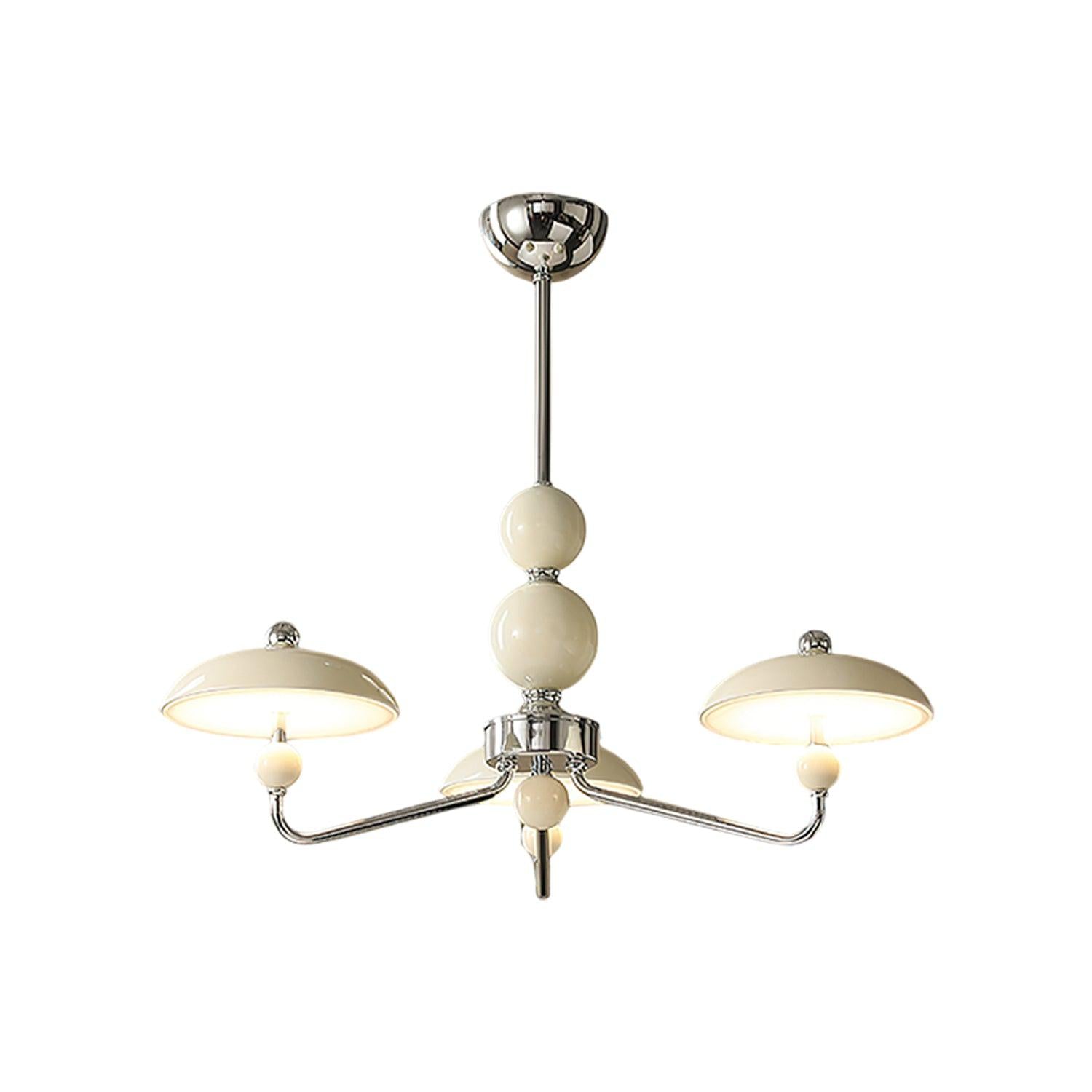 | Appearance | Mid-century modern silhouette, geometric shapes, disc shades (soft cream/beige), spherical accents, chrome/silver finish, slender arms & central column |